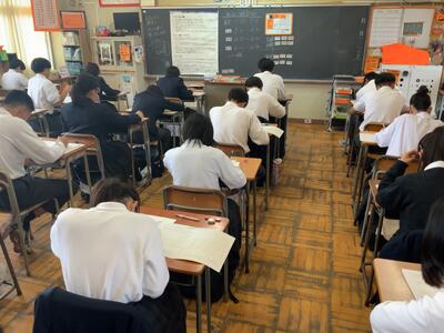 本日、中間考査1日目です。社会、国語、英語が行われます。先週の校長会テストからテスト続きですが、頑張れ54期!