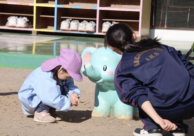 本日、ふれあい体験3クラス目でした。今回も2時間目の時間帯にあじゃましました。生徒は幼児と一緒に遊んで、楽しんで帰ってきました!