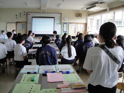 本日帰りのHRにて各担任より、熱中症予防に関する指導を行いました。スライドを用いてこれkら起こりうる熱中症について話をしました。生徒の皆さんは、これからも健康観察とこまめな水分補給をしてください。